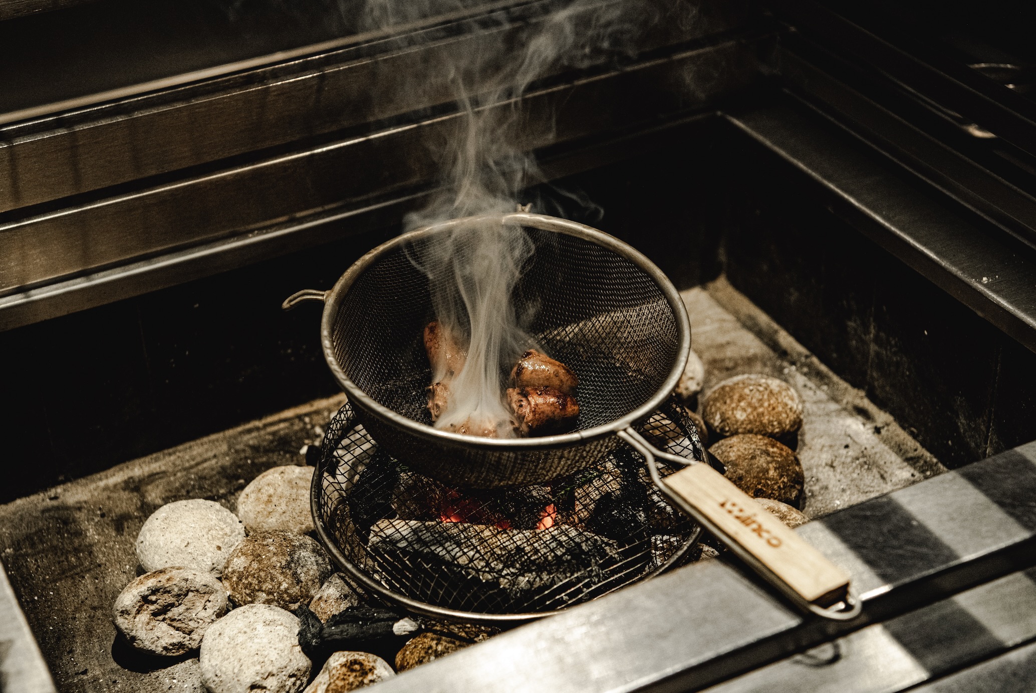 Guests will arrive to a shot at the door, before stepping into a room that’s been completely transformed. Instead of a fixed 20-seat counter and a set menu, we lose the chairs, and the whole restaurant becomes a casual, free-flowing space. The room will be reimagined around the Kitchen Counter, with dishes unfolding from different corners of the space, and drinks flowing all night from the lounge bar.
